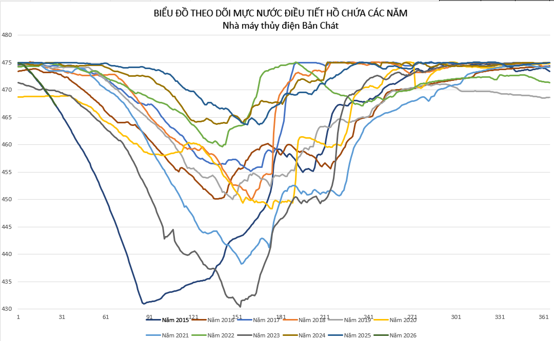 Mực nước hồ lúc 7h00 ngày 28/1/2026: 467,0 m