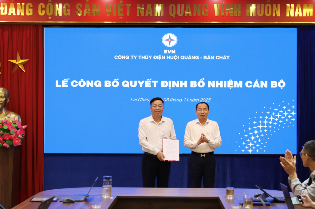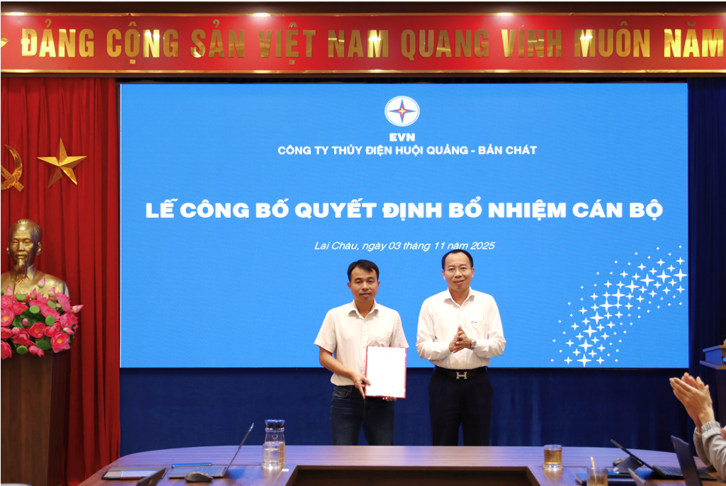 Chiều ngày 03/11/2025, Công ty Thủy điện Huội Quang - Bản Chát đã tổ chức trao quyết định bổ nhiệm cán bộ cho các ông: Nguyễn Xuân Hải và Lê Như Khang.